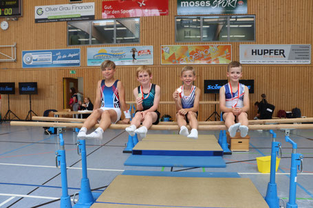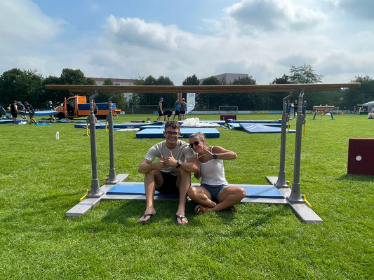 Das hieß Jonas Raue (Landesmeister AK 8/9) und Richard Sterner (3. Platz Landesmeisterschaften AK 8/9) mussten alle Übungen neu erlernen und noch ein Gerät zusätzlich meistern!