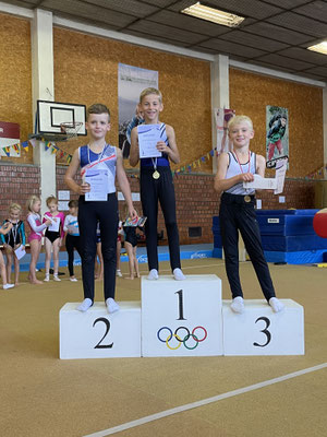 Bei den Mädels siegte in der AK 10/11 Anouk, Mila belegte Platz 3. Bei den Jungs gewann Till und Platz 2 erturnte Timofey.